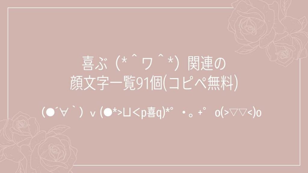 ここでは91種類のさまざまな喜ぶ顔文字を集めました。 嬉しいことがあった時に喜ぶ顔文字を文章につけると、ダイレクトに気持ちを表現することができます。 SNSやメールでたくさん使えるのでぜひコピペして使ってみてくださいね! 喜ぶ顔文字 v(*'-^*)ゞ・...