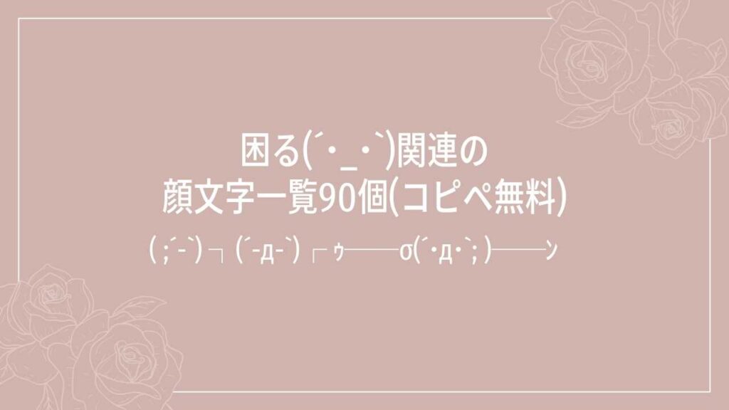ここでは90種類のさまざまな困る顔文字を集めました。 戸惑ったり、うまくいかないことを伝える時に便利な困る顔文字。 SNSだけでなく、友達や家族とのメールでもたくさん使えるのでぜひコピペして使ってみてくださいね! 困る顔文字 ( •︠ˍ•︡ ) (´•ω•`; )... -