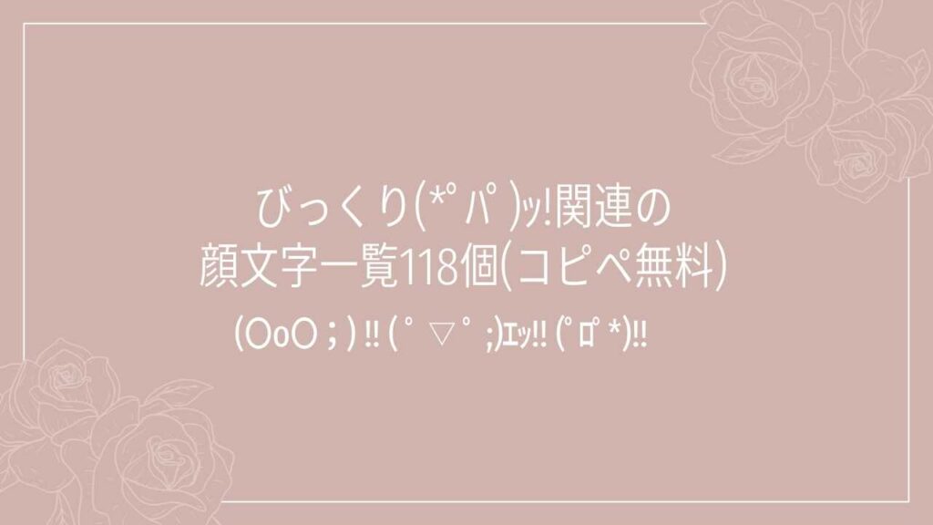 ここでは118種類のさまざまなびっくり関連の顔文字を集めました。 想像以上のことが起きた時や、騙された時などに使いやすいびっくりの顔文字。 メールでも使えますが、SNSで使いやすい顔文字だと思うのでぜひコピペして使ってみてくださいね! びっくりの... -
