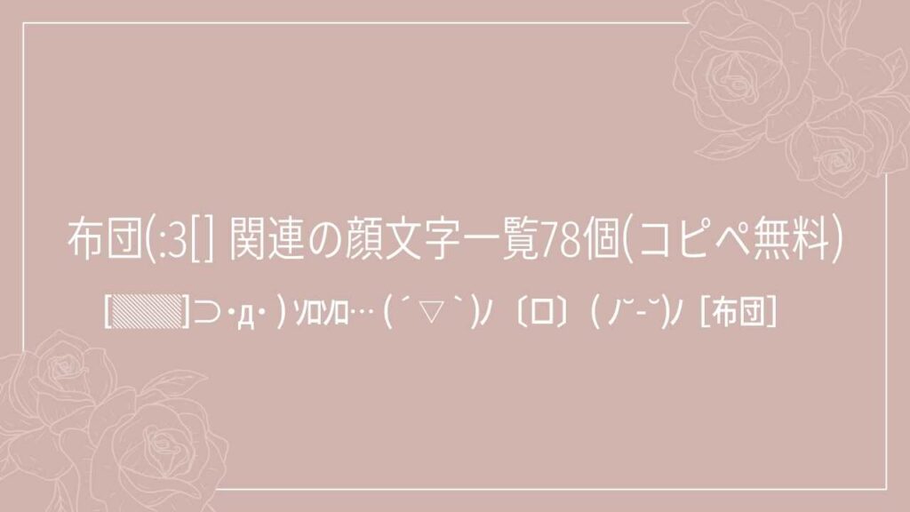 ここでは78種類のさまざまな布団の顔文字を集めました。 布団の顔文字はシンプルに起きた時や寝る時、まだ眠いことを表現するだけでなく温もりを求めたい時や甘えたい時にも使いやすいです。 SNSやメールで使える顔文字なのでコピペして使ってみてください...