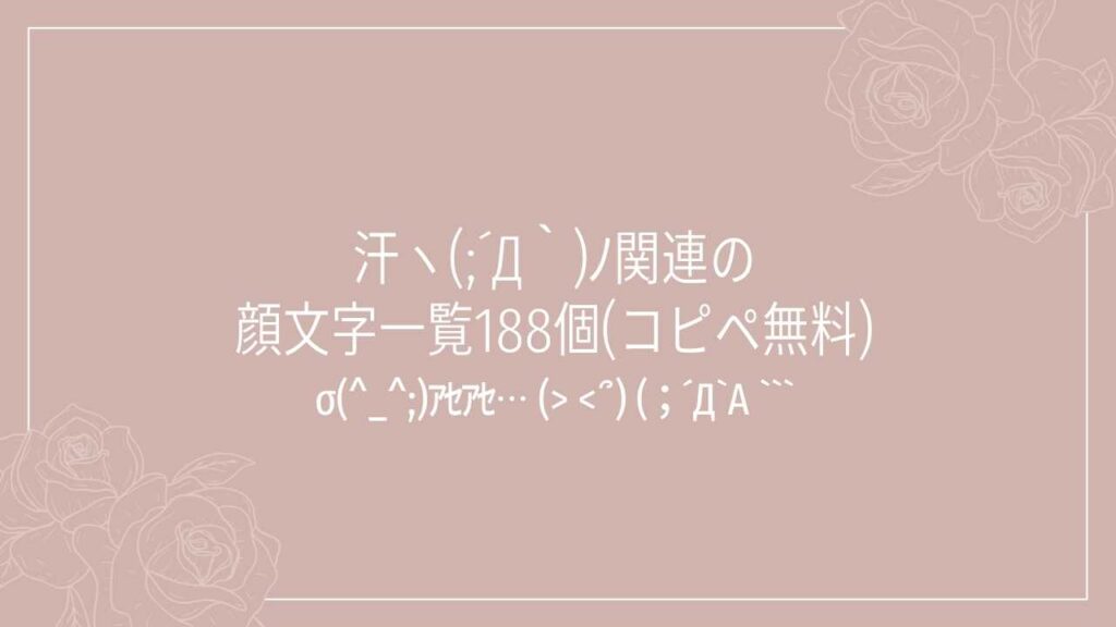 ここでは188種類のさまざまな汗の顔文字を集めました。 疲れている時や急いでいる時、気まずかったり困った時に使いやすい汗の顔文字。 実は、ほっとしたり安心した時にも使える万能な顔文字なんです。 SNSやメールで使いやすいのでぜひコピペして使ってみ...