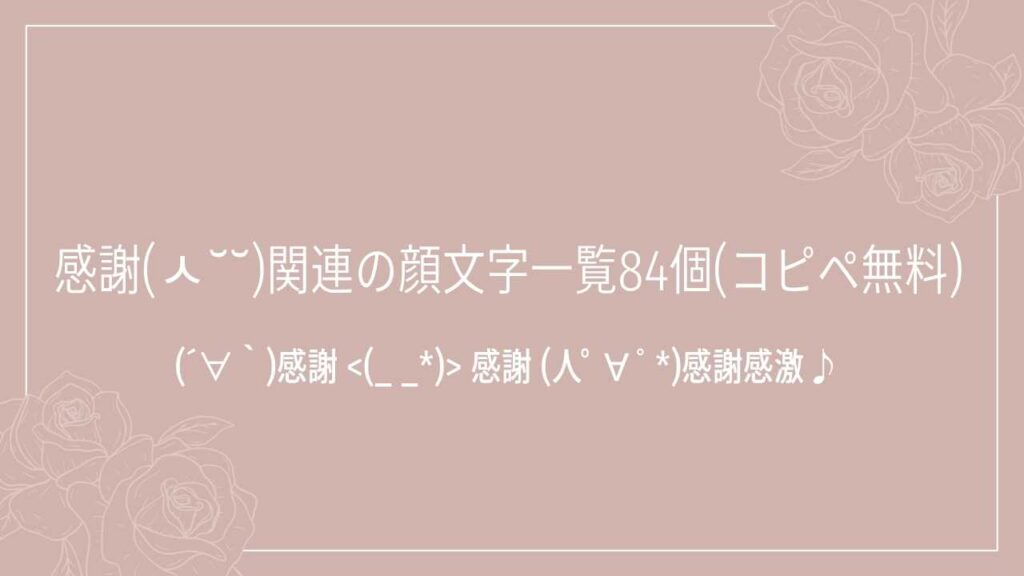 ここでは84種類のさまざまな感謝の顔文字を集めました。 感謝の顔文字は文末につけても使いやすいですし、文字入りのものであれば単体で使っても伝わりやすい顔文字です。 SNSやメールで感謝の気持ちを伝えたい時に使うとほっこりする文章になるので、ぜひ...